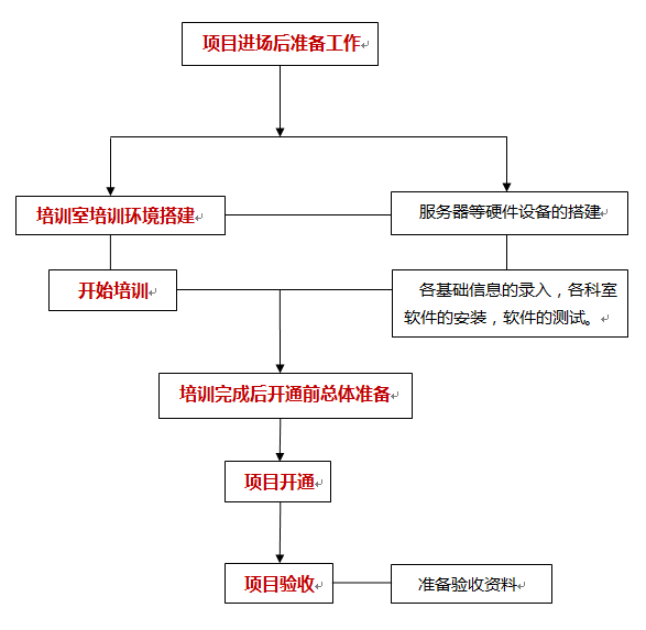 1)项目经理联系商务负责人员,取得医院基础信息及联系方式,并去现场进行考察调研;